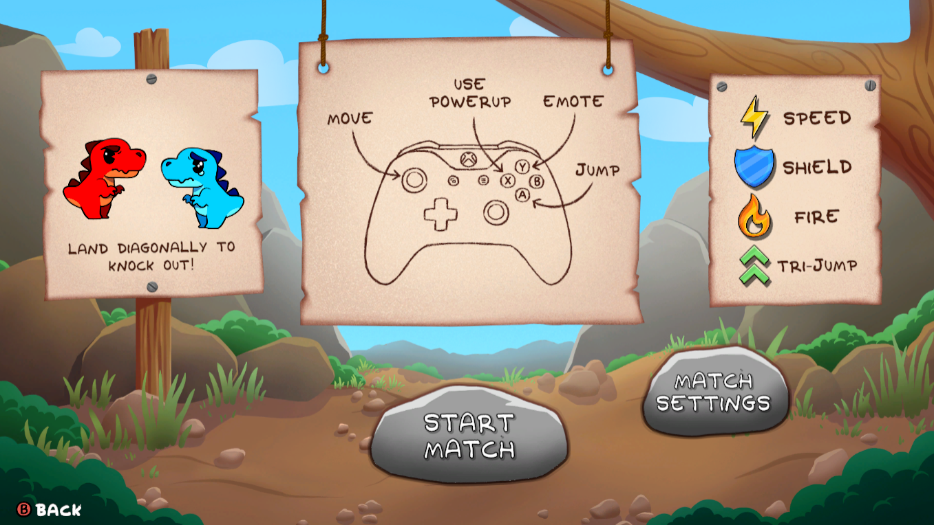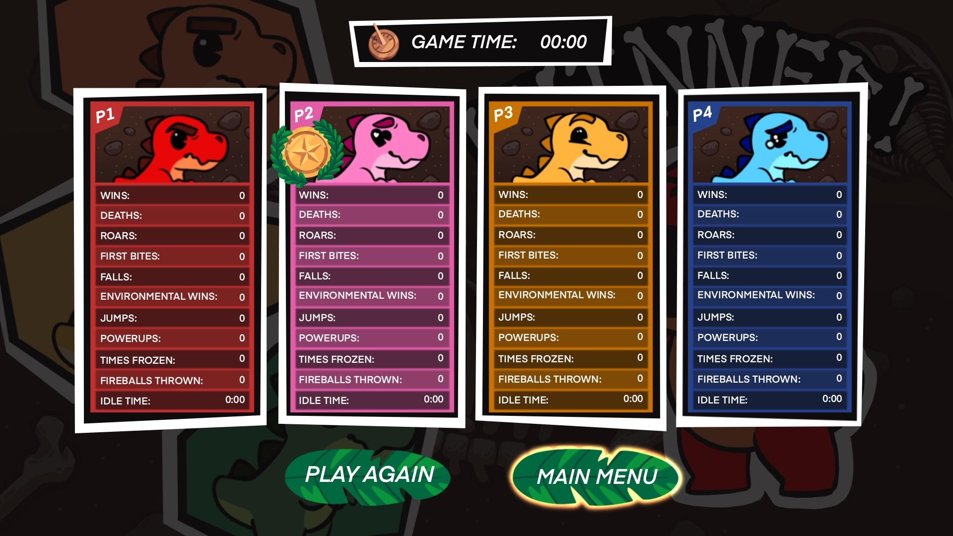 Dino-Might is a couch co-op fighting game where you control a tiny-armed T-Rex in a prehistoric smackdown! Customize your look, pounce on your opponents, dodge pitfalls, and watch out for the incoming meteor shower in a wild battle for survival. Who will be the last dino standing?